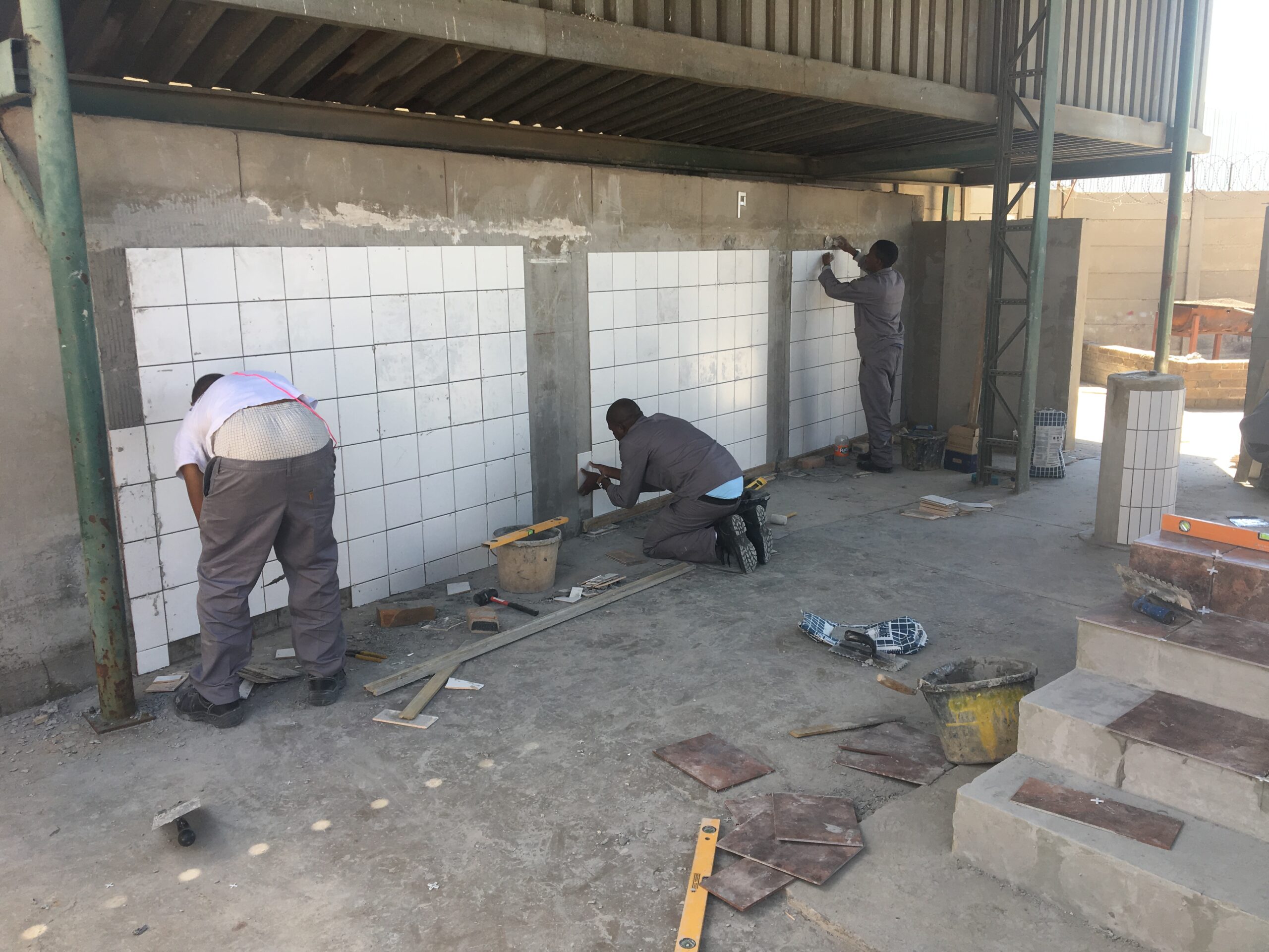 Building trades training, including bricklaying, carpentry, plumbing, plastering, tiling and painting, is undertaken in designated workshops. Able to accommodate between 15 and 20 candidates at a time, they also feature their own classrooms for theoretical instruction and simulated practical training areas.